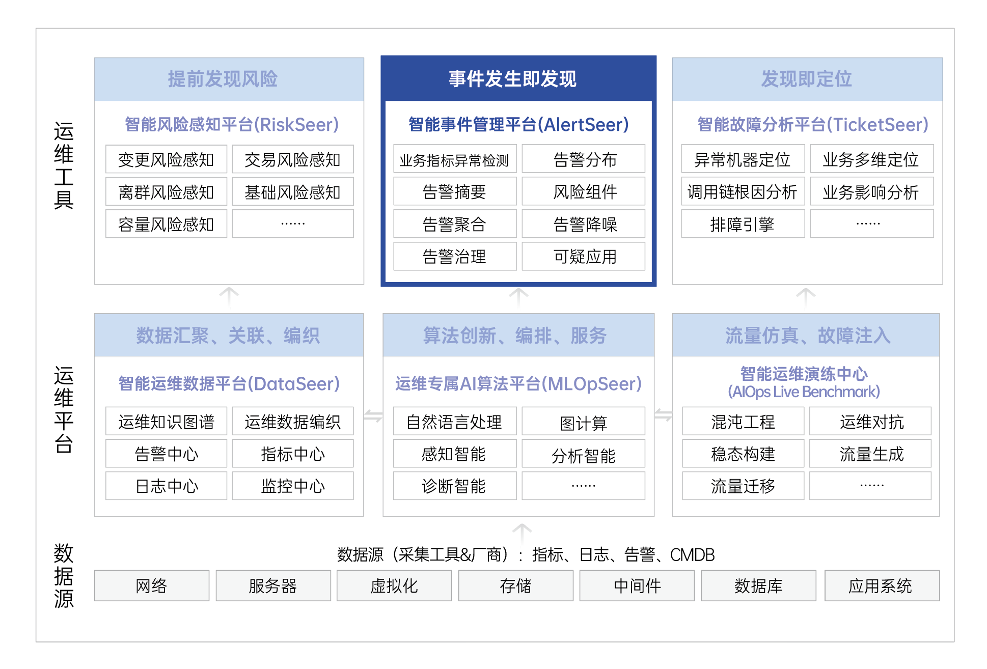 统一运维事件处理平台:整合各监控工具的告警事件,进行集中化管理与处理,上线系统工具间关联影响分析等场景功能,提高运维问题处理效率。