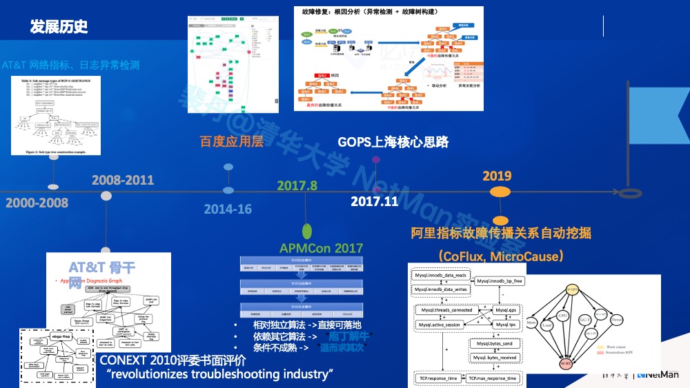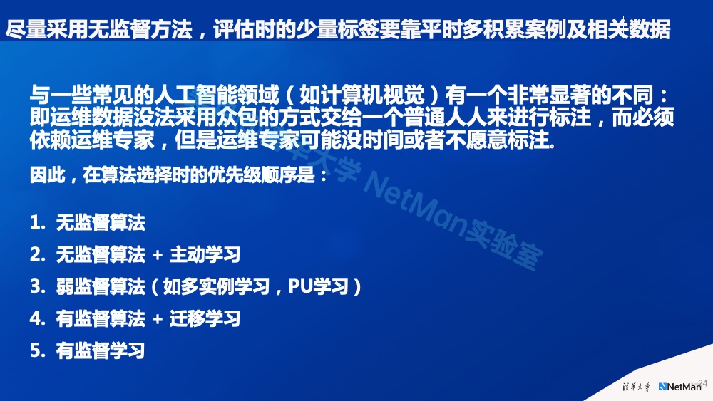 首先,相信大家到现在已经都了解不同运维场景用的技术和算法是不一样的(如下图所示我在清华实验室发表的论文中采用过的基础算法),很难用黑盒方法来做。
